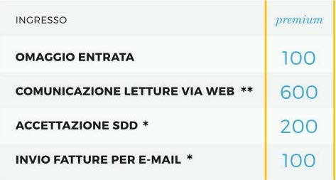 *Puoi maturare i punti indicati in tabella chiedendo l’invio delle fatture esclusivamente per e-mail ed effettuando i pagamenti con addebito diretto su conto corrente (SDD).